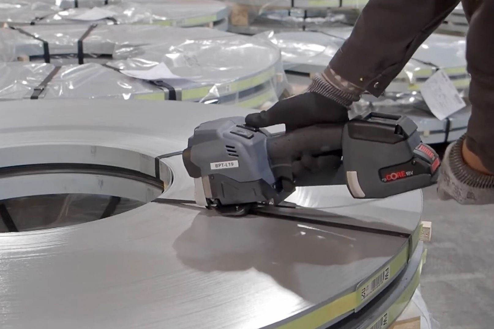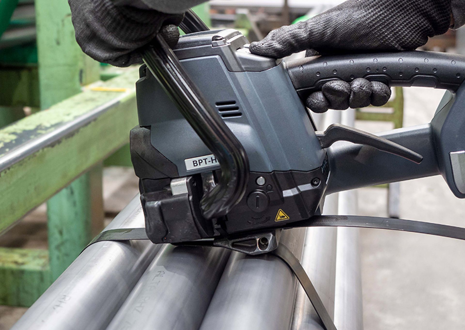 La herramienta BPT permite realizar aplicaciones de flejado reproducibles con movilidad ilimitada y sin los riesgos de tropiezo y las limitaciones de los sistemas neumáticos.