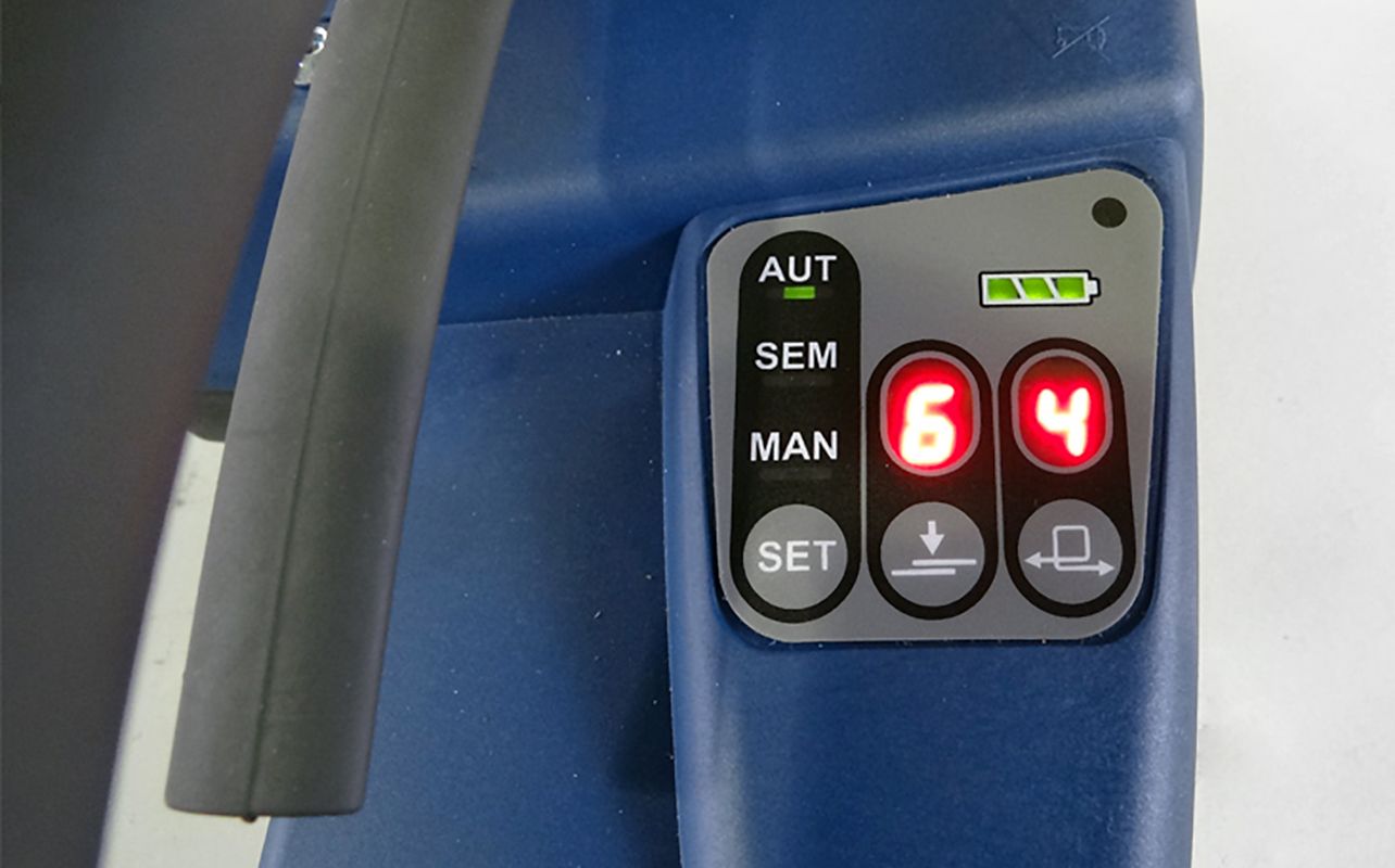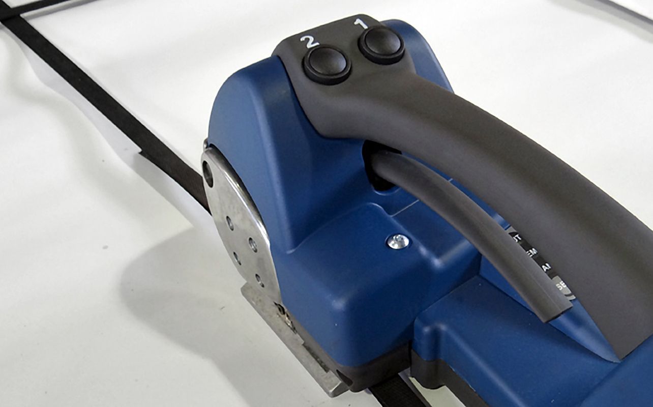 Nuevo diseño del panel principal, con selección de tipo de funcionamiento, (manual, semi-automático y automático), display para visualización de valores de tensionamiento y de soldadura e indicador gráfico de la capacidad restante de batería.