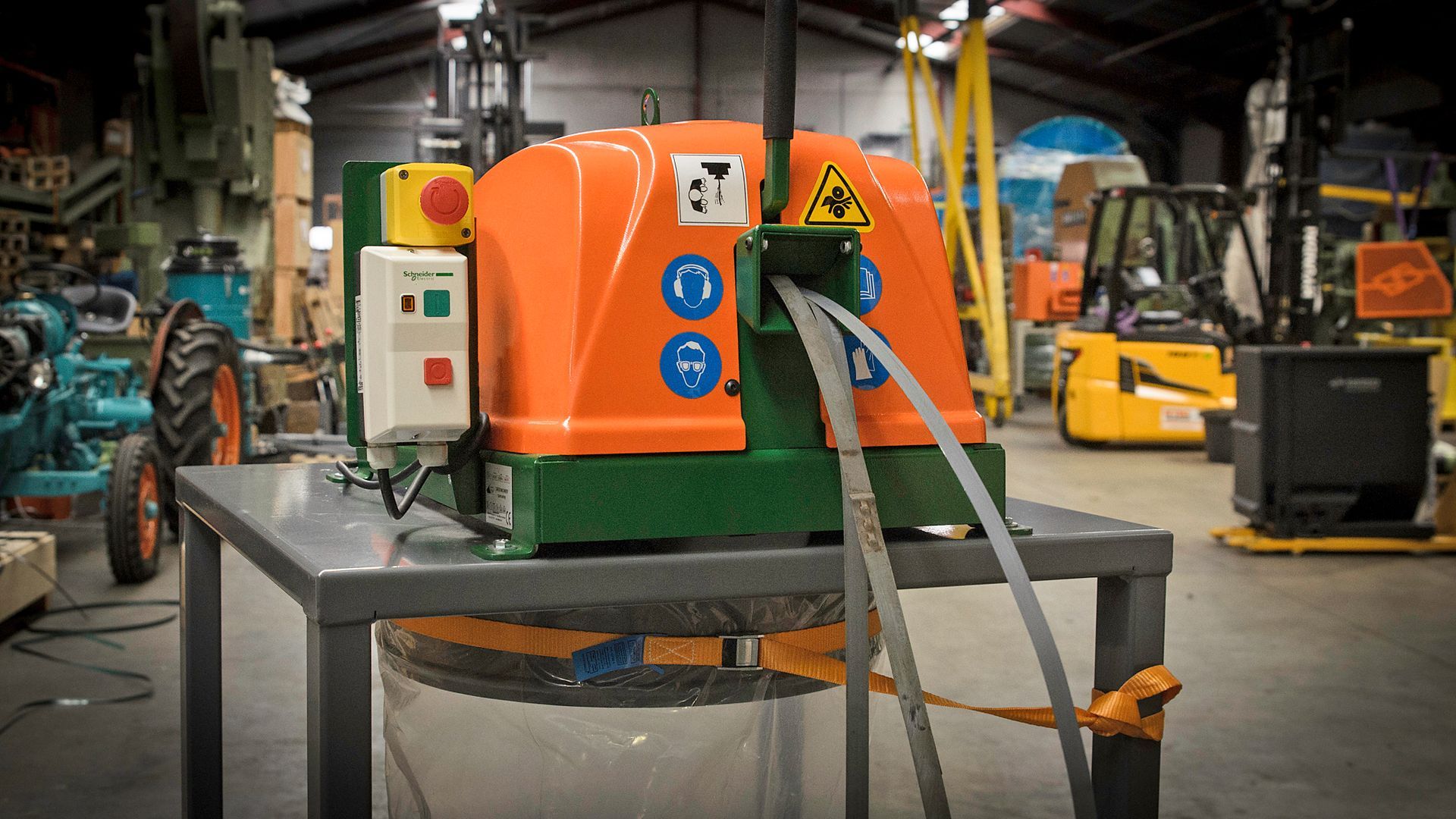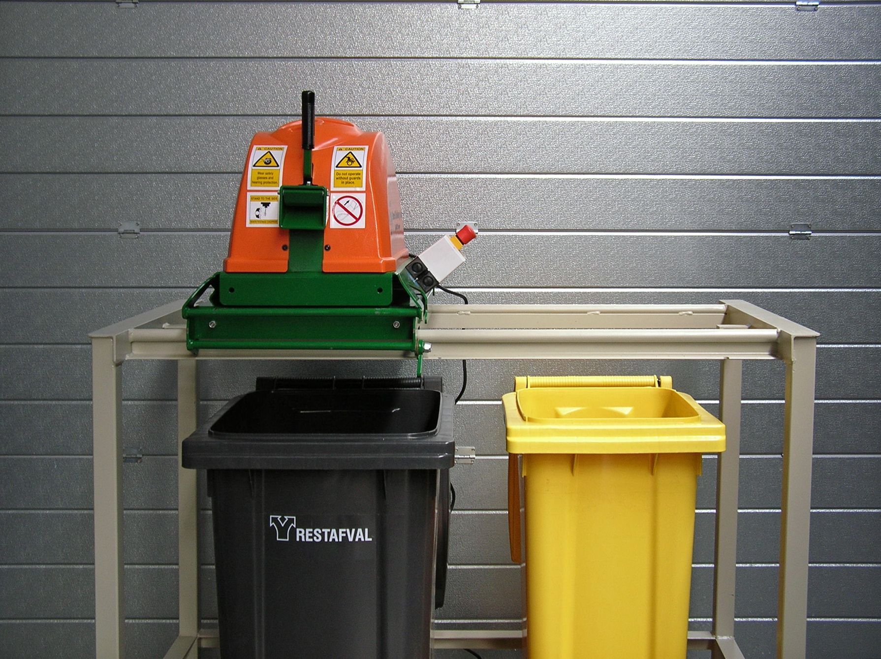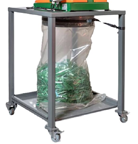 La máquina modelo 300 es una solución perfecta para la industria del envasado de alimentos y bebidas. Le ofrecemos también una variedad de bastidores de apoyo para ayudarle a recoger el material de desecho en una bolsa, caja, contenedor o lo que más le convenga para reintegrar residuos a la industria del reciclaje.