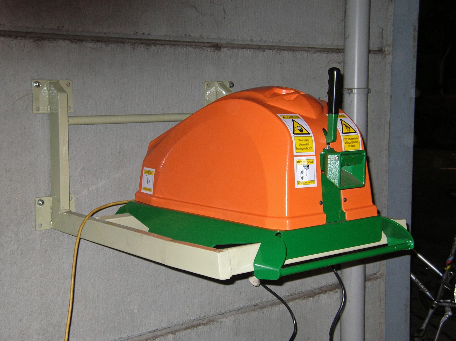 - 1 cuchilla fija y 1 cuchilla giratoria fijada en un volante de inercia de hierro fundido)