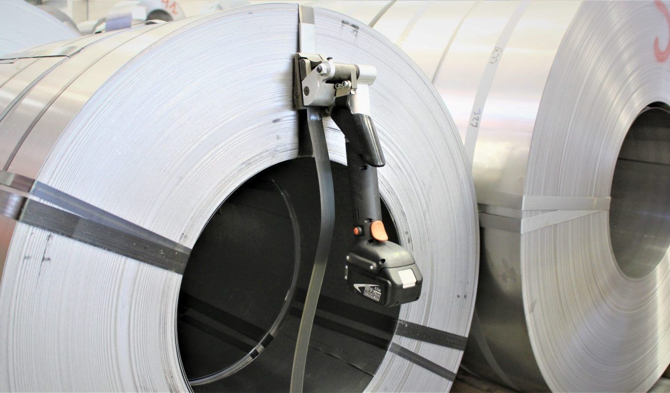 tensor a batería para flejes de acero (19, 25 y 32 mm) que ofrece el mismo rendimiento que la versión neumática, pero con total libertad de movimiento al no necesitar mangueras. Su batería